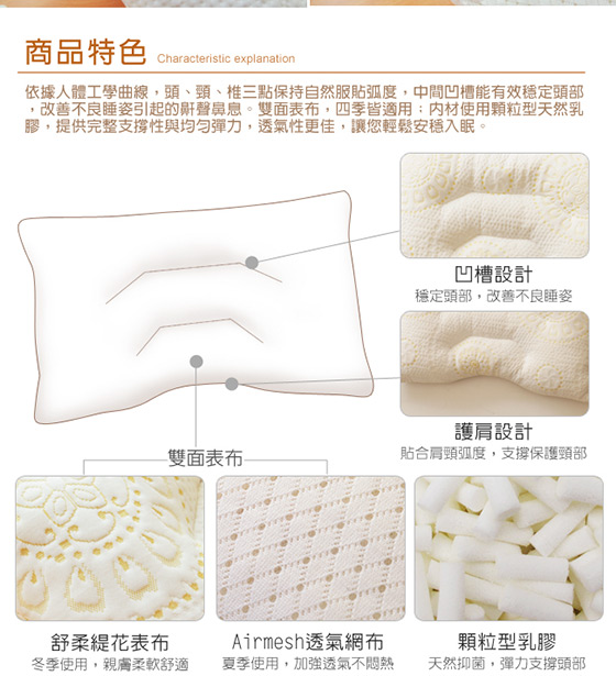 ●顆粒型乳膠天然抑菌,提供完整支撐性雨均勻彈力